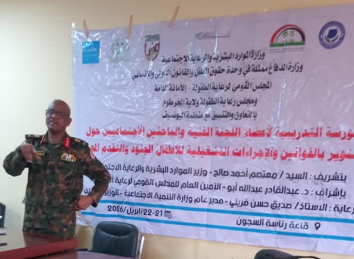 في إطار الجهود الوطنية الرامية لتعزيز بيئة آمنة للأطفال وحمايتهم من تداعيات النزاعات المسلحة، نظم المجلس القومي لرعاية الطفولة بدار التربية بسوبا، بالتعاون مع وحدة الطفل بالقوات المسلحة ومجلس الطفولة بولاية الخرطوم ومنظمة اليونيسف، ورشة تدريبية متخصصة للكوادر الشرطية والباحثين الاجتماعيين حول القوانين والإجراءات التشغيلية الخاصة بالأطفال الجنود. وخلال الورشة، أكد البروفيسور عبد القادر عبد الله أبو، الأمين العام للمجلس القومي لرعاية الطفولة، التزام السودان التام باتفاقية حقوق الطفل الدولية والقوانين الوطنية ذات الصلة، مشدداً بنبرة حازمة على أن الأطفال المنخرطين في النزاعات هم “ضحايا” بالدرجة الأولى، ما يجعل من حمايتهم وتأهيلهم النفسي والاجتماعي حجر الزاوية في كافة التدخلات الإنسانية والقانونية.