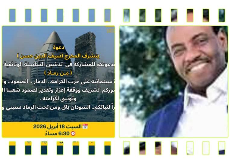 بيت السودان بالقاهرة يستضيف المخرج السوداني سيف الدين حسن في وثائقيته (مِـن رمـاد)